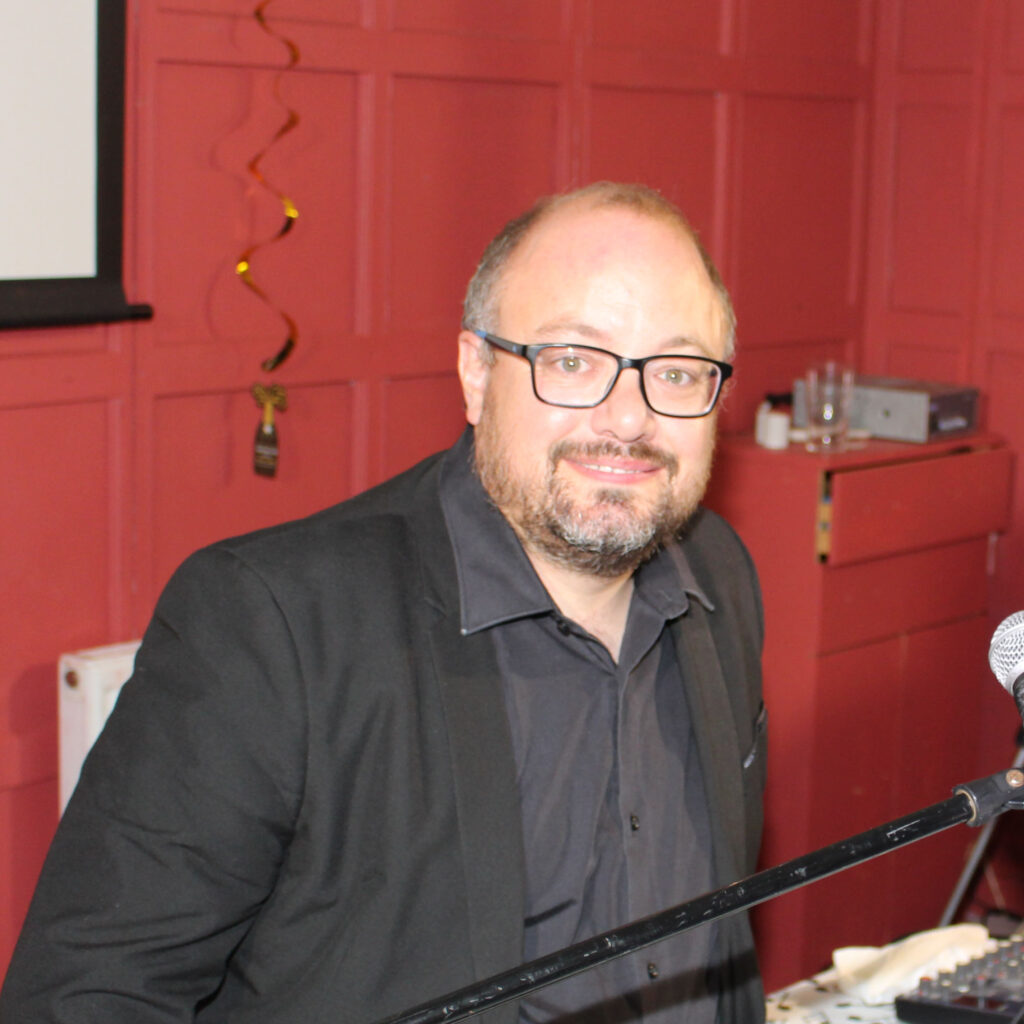 Guest performer for the May concert was BRETT WALES from Nottingham, making his ninth appearance for the Club … ‘appearance’ being the operative word as he stepped on to the stage, wearing a confusingly colourful jacket! However, the concert began in a poignant manner as Brett remarked upon the sad death, just two days earlier, of the iconic Greek composer Vangelis. Although the talented musician was perhaps better known for his film theme ‘Chariots of Fire’, Brett decided to perform another of his compositions Conquest of Paradise as his personal tribute.